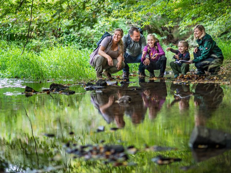Den Naturpark Reinhardswald machen historische Burgen, idyllische Bäche und urtümliche Bäume zu einem „Märchenwald“. Der Bach Holzape (Foto) bietet Lebensraum für zahlreiche Tier- und Pflanzenarten und führt zum historischen Wasserschloss Wülmersen.