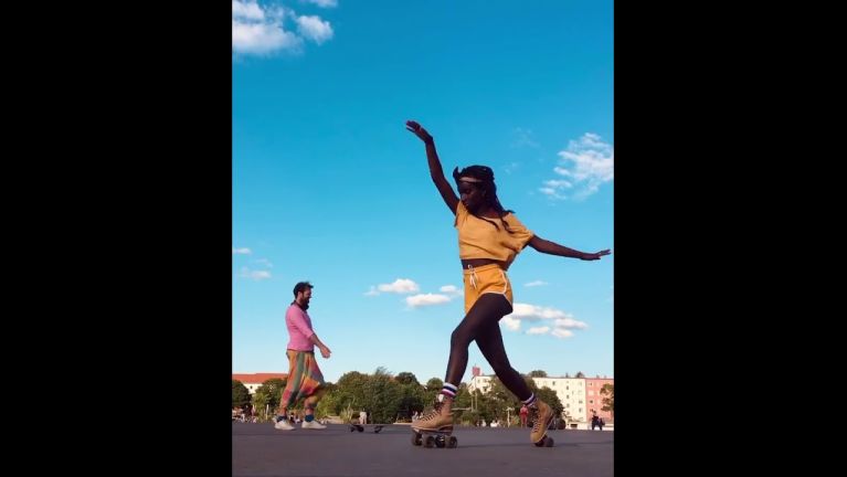 Es war dieses eine Instagram-Video, das Oumi Jantas Follower-Zahlen im Sommer 2020 explosionsartig steigen ließ. Es zeigt sie beim Rollschuhfahren auf dem Tempelhofer Feld in Berlin. Doch eigentlich ist es mehr als Rollschuhfahren, was die im Senegal geborene und in Deutschland aufgewachsene junge Frau macht. Oumi Janta tanzt auf den Rollen, gleitet elegant und lässig zur Musik über den Asphalt, so überzeugend, dass selbst Stars wie Alicia Keys ihr Video teilten. Manche nennen den Stil Jamskating, eine Mischung aus Tanz, Gymnastik und Roller Skating – Janta macht ihn zu etwas Eigenem, angereichert mit Elementen aus dem Rollkunstlauf.