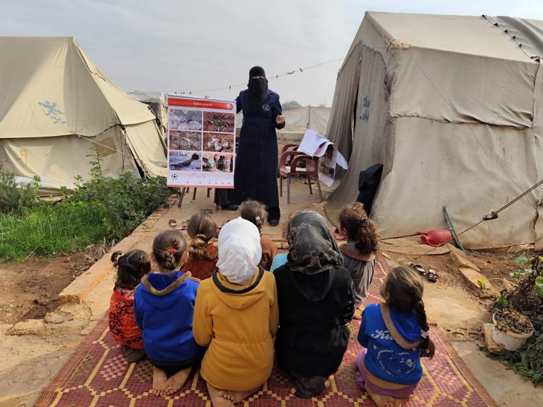 In Nordostsyrien engagiert sich Handicap International. Dort werden Minen geräumt, Gefahrenzonen kartiert und Opfer unterstützt – durch medizinische und psychologische Versorgung, Rehabilitation und Programme zur sozialen Wiedereingliederung. „Solche Einsätze beginnen damit, dass sich unsere Teams mit den Bewohnerinnen und Bewohnern treffen und sie über die Gefahren informieren. Dann kümmern wir uns vorrangig um Schulen, Krankenhäuser und Wasseraufbereitungsanlagen und beseitigen dort erst einmal sichtbare Sprengkörper“, erklärt von Roedern. Zugleich klären die Teams von Handicap International die Bevölkerung über die Gefahren auf, indem sie Broschüren und Flyer verteilen und auf Social Media über Blindgänger informieren.