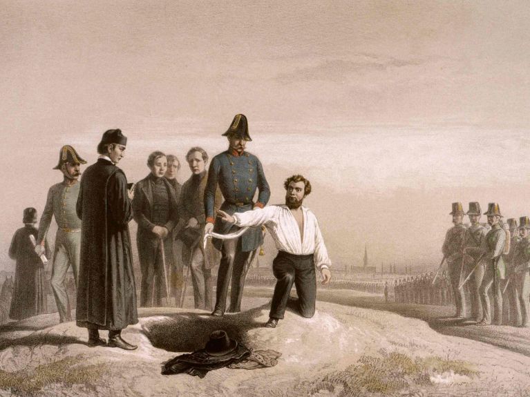 An diesem Donnerstag wurde in Wien der Demokrat, Publizist und Dichter Robert Blum hingerichtet. Blum war Abgeordneter des ersten demokratischen Parlaments, der Frankfurter Nationalversammlung in der Paulskirche. Als Leiter einer Delegation der demokratischen Fraktion der Nationalversammlung war er nach Wien gereist, um den Aufstand gegen den österreichischen Kaiser zu unterstützen. Nach Niederschlagung des Aufstands wurde er umgehend zum Tode verurteilt und erschossen. Seine letzten Worte waren: „Ich sterbe für die deutsche Freiheit, für die ich gekämpft. Möge das Vaterland meiner eingedenk sein.“ Blum gilt in Deutschland als demokratische Identifikationsfigur und steht gleichzeitig für das Scheitern der demokratischen deutschen Revolutionen von 1848/49.