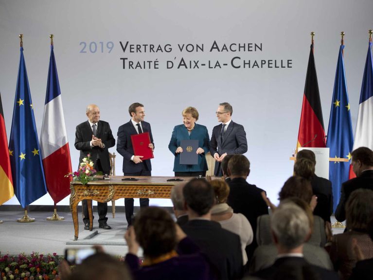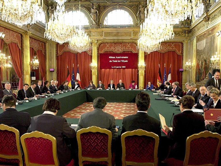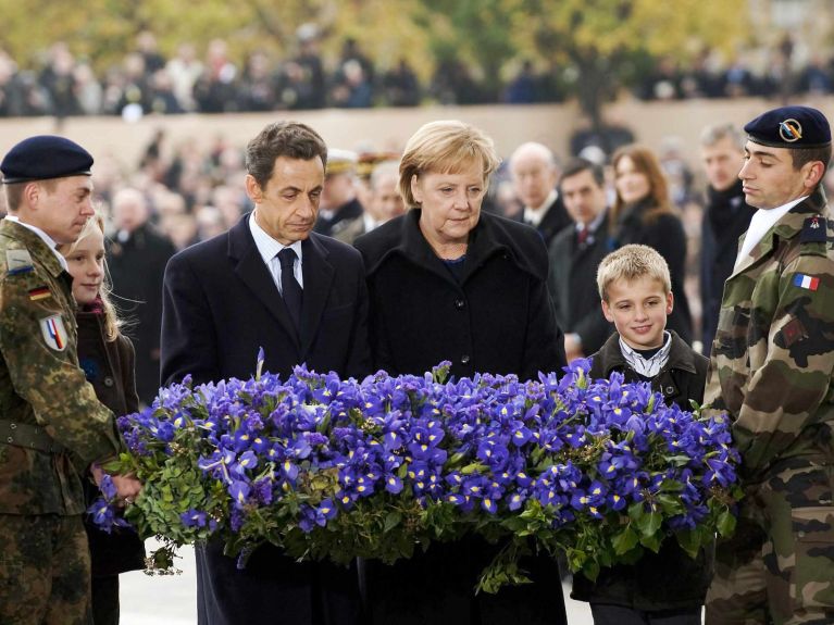 Aus der einstigen Feindschaft zwischen Deutschland und Frankreich erwuchs nach Ende des Zweiten Weltkriegs Schritt für Schritt eine enge Partnerschaft, die ganz Europa bis heute prägt. Ein frühes Signal setzte der französische Außenminister Robert Schuman 1950 mit der Idee gemeinsamer Kohle- und Stahlkontrolle – ein Fundament der europäischen Einigung. Den politischen Rahmen schufen Bundeskanzler Konrad Adenauer und Staatspräsident Charles de Gaulle mit dem Élysée-Vertrag von 1963: regelmäßige Abstimmung, enge Zusammenarbeit, Austauschprogramme. Symbolisch für die Versöhnung von Frankreich und Deutschland steht auch das Treffen von Helmut Kohl und François Mitterrand in Verdun 1984. Mit dem Vertrag von Aachen (2019/2020) wurde die deutsch-französische Freundschaft weiter vertieft – als Motor Europas bis heute.