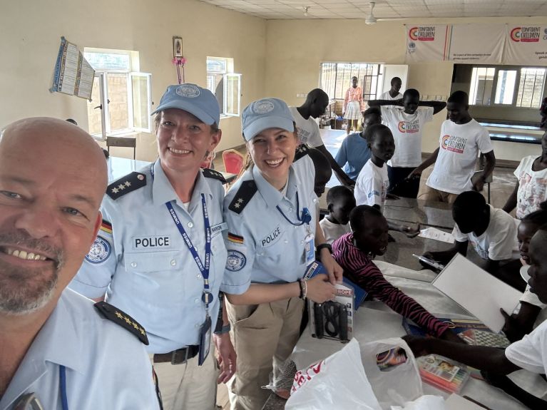 Das UNMISS-Mandat umfasst vier Säulen: Schutz der Zivilbevölkerung, Sicherung humanitärer Hilfe, Unterstützung des Friedensprozesses und Förderung der Menschenrechte. Deutschland ist seit 2011 auf allen Ebenen – zivil, militärisch und polizeilich – aktiv an der UNMISS-Friedensmission beteiligt. „Polizeiarbeit ist dabei die Brücke zwischen unserem Schutzauftrag und dem Vertrauen, das wir uns tagtäglich im direkten Austausch mit den Menschen erarbeiten“, sagt Schlotmann.